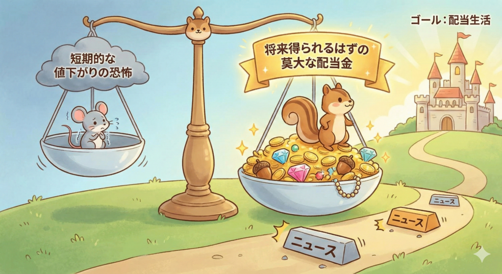 だから私は、足元の小石(ニュース)に躓くのを恐れず、遠くのゴール(配当生活)を見て走ることにしました。