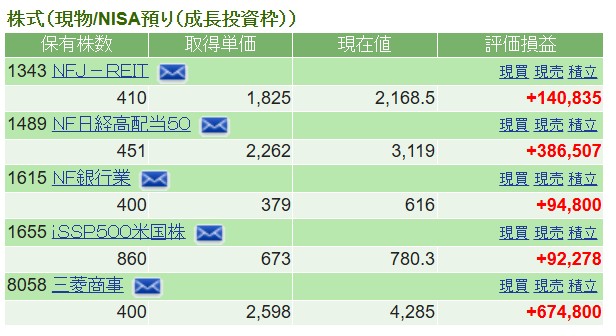 - 三菱商事や銀行株が、資産額(評価益)を大きく押し上げてくれる。